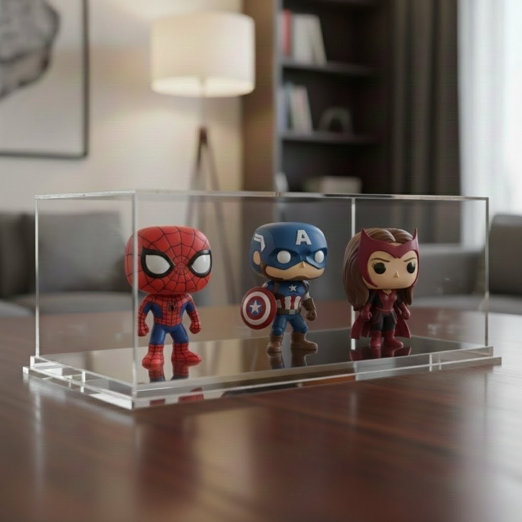 O acrílico premium oferece uma visão perfeitamente clara e desobstruída do item e atua como um escudo protetor elegante, defendendo suas peças contra poeira, umidade e o toque do tempo.