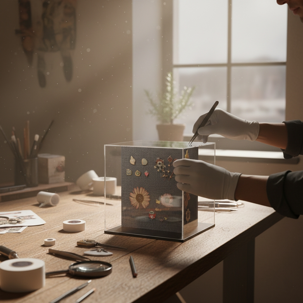 Na Make Frame, entendemos que esta montagem é uma Vitrine de Memórias “A Arte de Exibir e Preservar com Acrílico”.