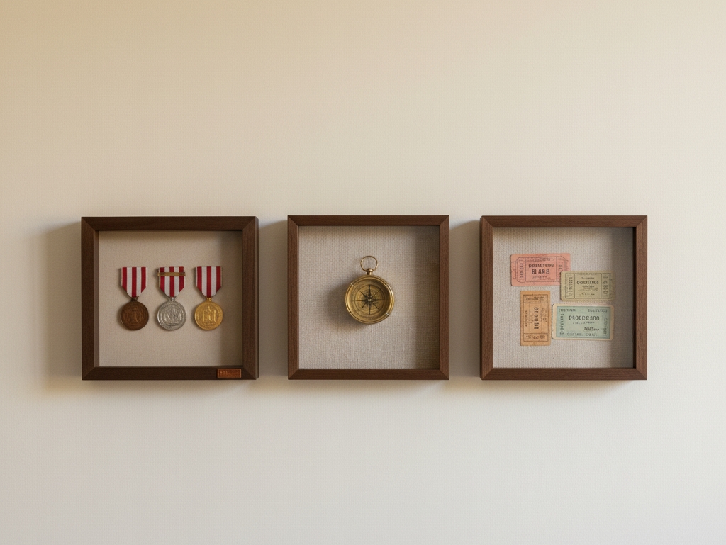 Entendemos o significado do seu objeto — seja uma coleção de ingressos de shows, uma carta antiga, ou um item que marca uma transição de vida, selecionamos os materiais, cores, fundos e técnicas de montagem que não apenas protegem o objeto, mas também amplificam sua emoção e propósito.